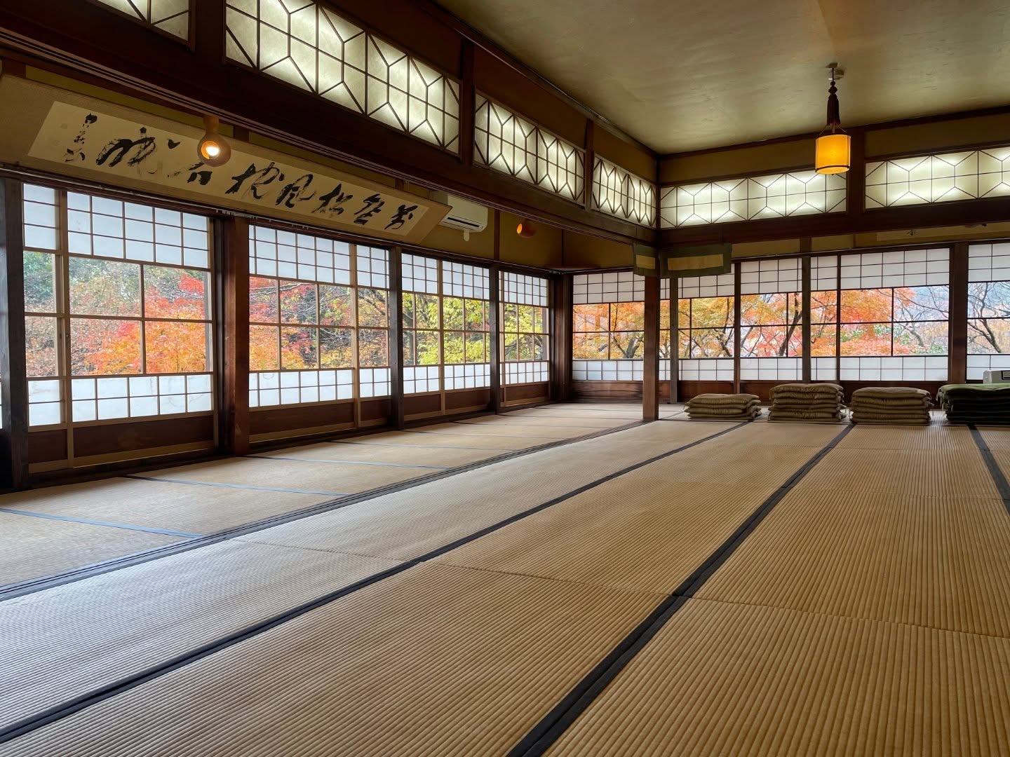 明治のガラスを通して眺める紅葉は