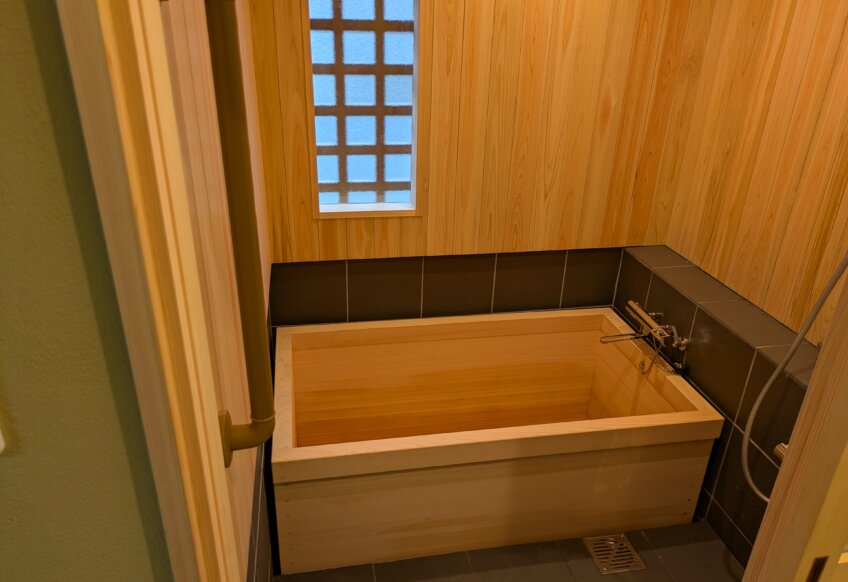 桜の間にヒノキ風呂とトイレの工事が完成しました。
