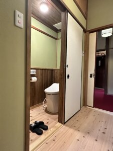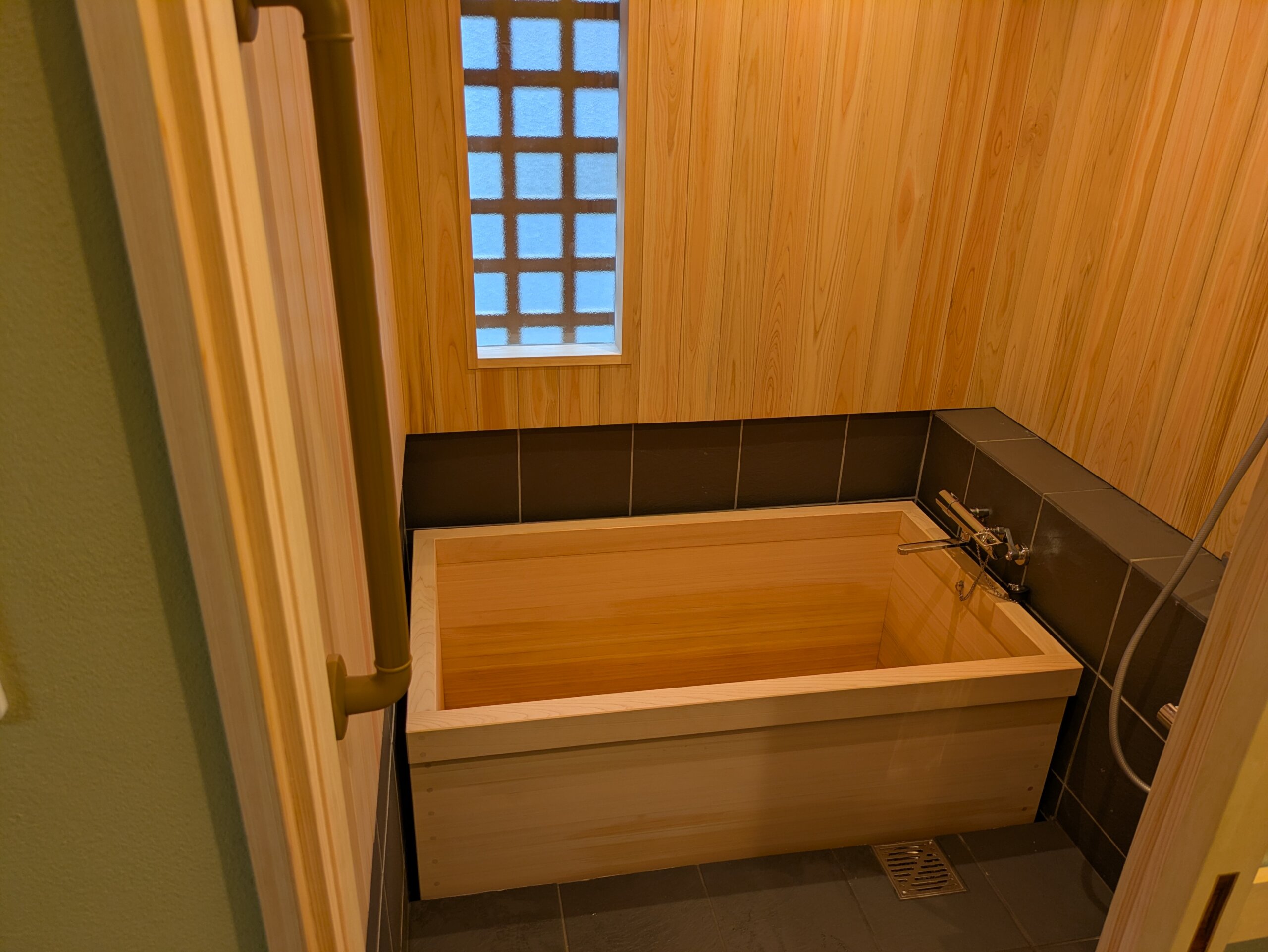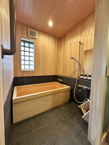 桜の間にヒノキ風呂とトイレの工事が完成しました。