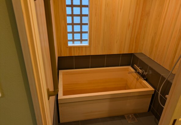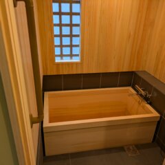 桜の間にヒノキ風呂とトイレの工事が完成しまし...